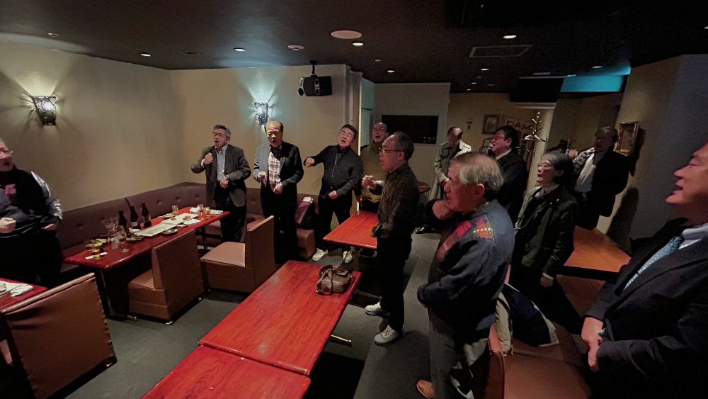 - 別室のカラオケルームに移動して校歌・応援歌を熱唱、エールを交換して散会となりました。